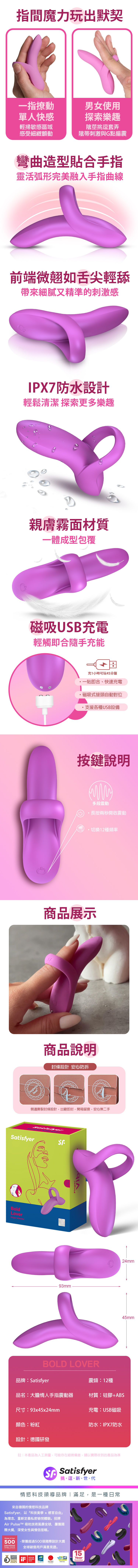 品名:Satisfyer|Bold Lover|大膽情人 多功能手指震動器 桃紅